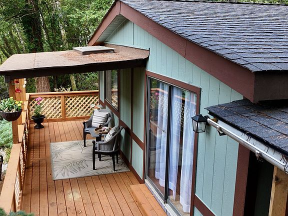 LIGHT, BRIGHT, AND AIRY with a big lot and true privacy. Wooded views frame a beautiful setting for this restored 2-bed, 2-bath home in a nice 55+ park, complete with its own garage. Live near the Chetco River, outside the typical marine layer, and enjoy the calm of country living with the convenience of town within easy reach. The homesite is generous and open, giving you room to breathe, garden, and entertain. Redwood and fir trees rise around the property, creating a natural backdrop and a peaceful sense of seclusion.Inside, the home feels inviting and move-in ready. Natural light fills the living room and dining area, while a practical kitchen offers good storage and an efficient layout for everyday cooking. The primary bedroom features an ensuite bath, and the guest bedroom sits near a second full bath for comfortable separation. A dedicated laundry area adds daily ease. Finishes are classic and clean, so your furniture and style can take center stage.Outdoor living is the star here. Step onto the covered deck for morning coffee, unwind in the hot tub after a day on the river or the trails, and host friends in the gracious outdoor space that flows around the home. The garage provides secure parking and extra storage for tools, toys, and seasonal gear.This location makes life simple. Warmer mornings, more sun, and quick access to recreation along the Chetco. Groceries, entertainment, dining, medical, and beaches are minutes away, yet the property holds its quiet, private feel. Park space includes sewer and trash, keeping monthly essentials streamlined.If you value privacy, light, and a real sense of space, this home delivers. It is tidy, comfortable, and ready for its next chapter. Bring your garden plans, your river. fishing gear, and your vision for easy coastal living. NEW BUYERS MUST BE PARK APPROVED.