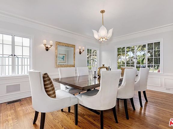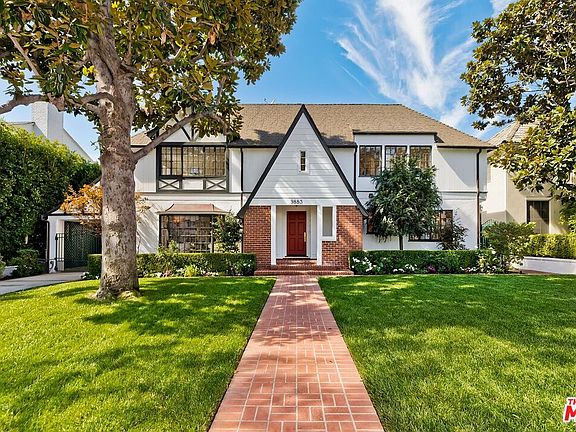 Welcome home to this comfortably elegant and spacious 2sty classic Traditional estate which has been tastefully updated over the years and is now available for the first time in nearly 25 years. Featuring beautiful wood floors, mouldings, and steel-casement windows, the home exudes charm at every turn as well as exhibiting a quintessential layout for intimate or large-scale gatherings. The dramatic entry foyer leads to a gracious living room with bay window, a formal dining room, and a quaint paneled den with fireplace opening to a massive family/media space. The family/media space flows to the fantastically deep grounds with endless lawns, patios, a great pool house (changing room/kitchenette/bath), mature privacy landscape, and a phenomenal fountained pool perfectly placed at the rear of the lot. Chef's center-isle kitchen with top stainless appliances and sweet breakfast area. 4 bedrooms upstairs including a substantial primary suite with dressing area, walk-in closet, and luxe marble bathroom. One upstairs guest bedroom accesses a lovely private view terrace overlooking the rear grounds. Guest/maid's quarters are downstairs and can function as a home office. With the ultimate curb appeal and a uniquely deep lot (appx 176ft), this home presents a wonderful opportunity for a buyer seeking value in a prime Westend Flats location moments from the finest amenities in Beverly Hills and the Westside.