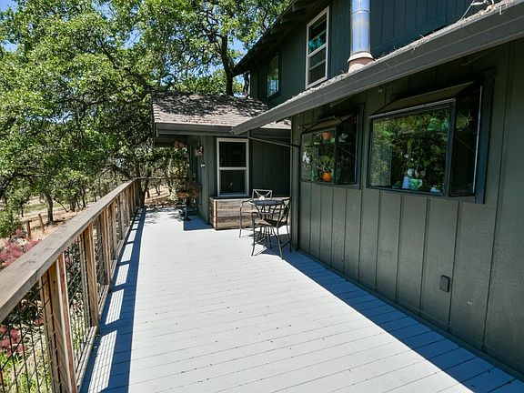 Custom home nestled in the middle of 5 acres with beautifully well-kept landscaping and OWNED SOLAR. Entering the home you'll find a cozy living room, the dining area and beautiful open kitchen with newer stainless steal appliances and a dream island - perfect for entertaining, baking and more. Master bedroom, bathroom and walk in closet is upstairs, downstairs hosts 3 bedrooms, a full bathroom then a laundry room with a half bath, counter with sink, storage and freezer. Outside has Trex decking on front porch, back and side decking, detached garage (24x30), a barn with one stall and hay storage (bring your horse), and shed located in backyard. There's a cool green house located in front/side yard for garden or more storage. Highly desirable BVID irrigation with 13k gallon irrigation holding tank. See it today!
