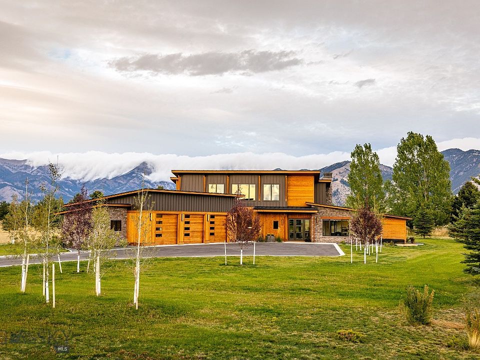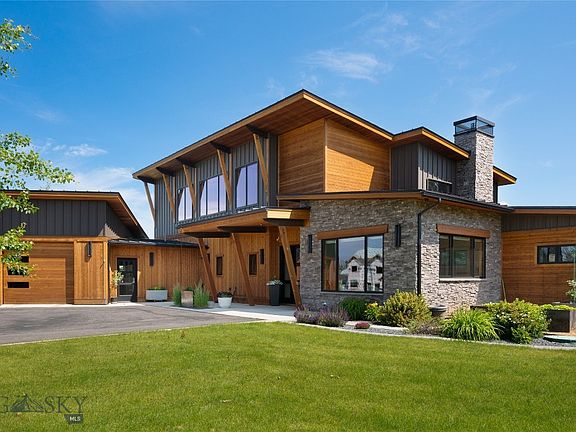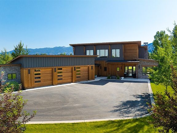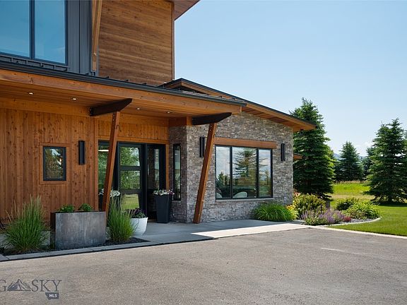 Discover a true architectural masterpiece in this stunning home in exclusive Bridger Lake Meadows. Situated on a lushly landscaped acre, the homesite backs to open space to protect the breathtaking Bridger Mountain views. Upon entering this fine home, one is taken by the exceptional finishes at every turn, like custom solid walnut interior doors and a carefully curated lighting package. The panoramic breathtaking views from every window and outdoor space effortlessly blend architectural brilliance with luxurious livability. Ideal for both private relaxation and elegant entertaining, this home showcases floor-to-ceiling windows that seamlessly connect interior spaces with the surrounding natural beauty. The great room makes a bold statement with the soaring ceilings, custom steel fireplace, floor to ceiling rock wall, wood ceiling and exposed steel beams, Hunter Douglas electronic shades and heated floors.
