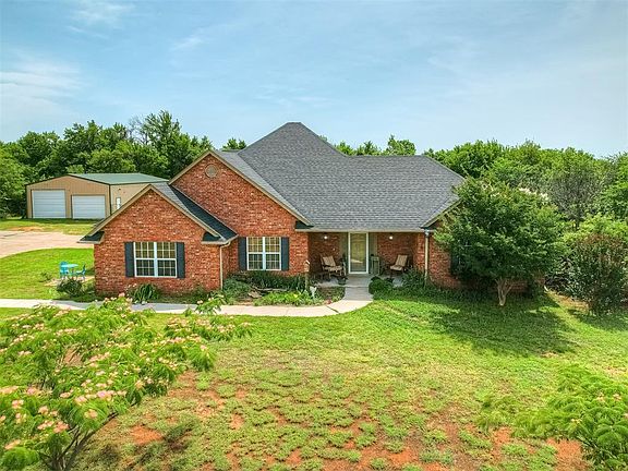 !!Open house this Sunday October 5th 2-4pm!! This wonderful 3 bedroom PLUS large study family home features wonderful upgrades including brand new ROOF, smart doorbell camera, smart deadbolt, smart thermostat with multiroom temperature monitoring, smart app controlled security system add-on plus security cameras and a total of 19 smart switches to control lighting throughout the home! Lots of storage and built-ins in this home! Chef's kitchen has lots of cabinets, granite countertops, center island and large dining space! Private master suite features 2 sinks, Jacuzzi tub and separate shower. Enjoy the amazing outdoors with the 24 x 54 above ground pool with ozone generator and glass filter, 16 x 15 deck and 14 x 10 platform deck with pergola! PLUS a 60 x 30 SHOP with two 8 ft overhead doors, one 10 ft overhead door and 1 entry door and includes a 20 x 19 room within the shop with ac and 3 smart light switches! Other smart features include smart landscape lighting in front yard that controls fountain and home and shop have smart garage door openers. Lots of pretty trees and a chicken run too!. Property goes to chain length fence; seller will provide new survey by closing. Such a convenient location close to all major highways; just 1 mile off Mustang Road! If you are ready for country living yet want to enjoy all the conveniences of being close to amenities, this property is for you! Not in an HOA!!