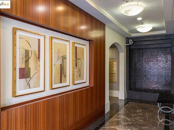 This tastefully updated top-floor 2-bed/2-bath home offers comfort, style, and convenience. The open layout features a bright living room and a cozy dining nook with built-in seating and hidden storage. The modern kitchen includes stone countertops, a gas range, and quality stainless steel appliances. Bedrooms are thoughtfully placed on opposite sides of the living area, each with walk-in closets and peaceful courtyard views—ideal for privacy and natural light. Community amenities include EV charging in the secure garage and a rooftop deck with sweeping city views. Just minutes from BART, the ferry, and freeways, and steps to local cafes, restaurants, shops, and the farmers' market—this home puts you at the heart of it all.
