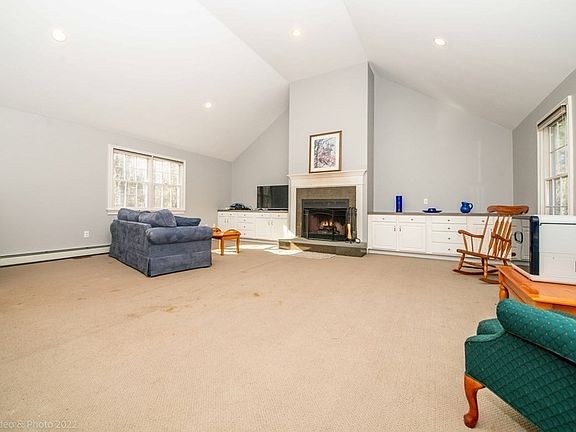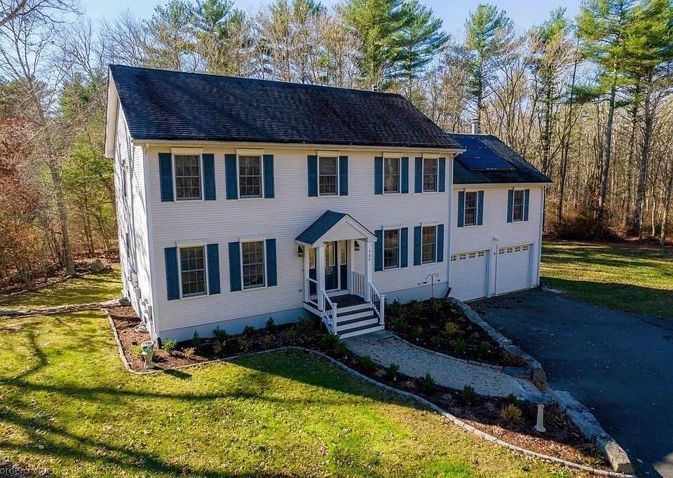 This 4 bedroom colonial is set back from the road in a bucolic setting with old stone walls meandering throughout the 18 acres. This 6-football-field-deep lot is ideal for exploring, hunting, a gentleman's farm, or general outdoor recreation. The first floor features an enormous living room with a fireplace and cathedral ceilings. There's a separate family room, dining room, eat in kitchen, half bath, and laundry room. The Azek deck is accessed from the kitchen and offers a panoramic view of the back yard and the woods beyond. Upstairs consists of a master suite with private bath and walk-in closet, 3 additional bedrooms, and a full bath. Modern construction, desirable school system, and rights to Silver Shell Beach ensures that this home checks all of the boxes.