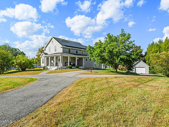 This stunning 5-bedroom, 3-bath farmhouse was fully renovated from top to bottom in 2020, offering 2,800 SqFt of stylish, move-in-ready living space in one of Southeast Pittsfield's most desirable neighborhoods. Situated on a generous corner lot, the home makes a striking first impression with its inviting wraparound front porch. A circular driveway provides ample parking and is complimented by a detached one-car garage. Step through the front door into a spacious foyer with sleek hardwood floors throughout the open concept main level. The dining room has enough space for memorable meals and entertaining, while the chef's kitchen is outfitted with stainless steel appliances, a natural gas range, quartz & granite countertops, center island and French doors leading to a side deck that is perfect for year-round grilling. The expansive living room easily accommodates a large-screen TV or projector for movie nights or gatherings. Additional main floor highlights include a pantry, half bath, and a dedicated laundry room for convenience. Upstairs, discover four spacious bedrooms and two beautifully updated full baths. The primary suite is a step away for privacy and features enough space for a reading nook, office space or workout area. A full bath with a walk-in shower a jacent to the primary bedroom makes this a true retreat. This home is turnkey with complete renovations in 2020 including: new roof, windows, siding, updated kitchen & baths, flooring, lighting, electrical, plumbing, garage, driveway, TWO high-efficiency natural gas forced hot air systems with the potential to add central A/C and 2023 leased solar panels with a high end whole-house battery backup system. Energy efficient, thoughtfully designed, and full of character-this farmhouse blends timeless style with modern upgrades for today's lifestyle.