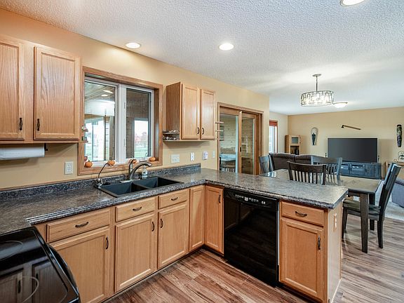 Welcome to 9890 77th Street, a meticulously maintained residence tucked into one of Cottage Grove's premier neighborhoods with mature trees and great access to schools, highways, and more. Curb appeal abounds with an arched brick portico entry. The main level features an open floor plan peninsula kitchen with tons of cabinets and counter space, stainless steel appliances, recessed lighting, and great sight lines and views across the dining area to the family room and to the backyard and beyond. Just off the informal dining is a cabin-style 3 season porch with direct access out to the deck and the backyard. The formal dining and living room offer maximum flexibility of use as home offices or anything you have in mind. A half bath and a main floor mudroom and laundry just off the garage round out the main level amenities. A spacious primary bedroom with a ceiling light/fan and a spacious walk-in closet and updated en suite bathroom with dual sinks highlights the upper level. Three additional bedrooms and another full bathroom on the upper level are hard to find in today's market. The lower level boasts stunning lookout windows, a bar and kitchenette, ample space for a pool or ping pong table, a cozy gas fireplace, an exercise area, a massive storage closet, and a 3/4 bath. A fifth bedroom, if desired, could easily be created out of the existing finished space by just framing up a wall. With a 4' high 12 x 18 bonus storage area under the garage addition, you'll never run out of space. Enjoy your very own backyard oasis, featuring a maintenance-free deck and grill area, a beautifully stamped concrete patio and custom fire pit area, a lush fenced yard, large planter beds, and absolute privacy with no neighbors to the back and running room galore with gated access to the school grounds and ball fields. The heated and finished 3 car garage has been extended by an extra 12 x 18 feet, offering ample space for all your vehicles and storage needs. A newer furnace and AC (both 2023), A+ location, and absolutely move-in ready condition makes this home tough to beat!