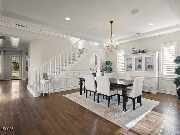 Welcome to 9890 Kerrydale Ct, a stunning luxury home in one of South Reno's premier gated communities. This warm and inviting 4-bedroom, 3.5-bath residence offers over 4,100 sq. ft. of elegant living space with breathtaking views of Mt. Rose and the Virginia Foothills. The home features an en-suite bedroom on the main level, multiple balconies to take in views from every angle, and a private courtyard with a gas fire pit—perfect for relaxing or entertaining. Upstairs, a spacious bonus room provides versatile living options and access to a covered balcony with incredible views. The beautifully remodeled primary suite includes a spa-like bath with designer finishes and a vast private balcony. Additional highlights include an owned whole-home water filtration and reverse osmosis system, plus an in-line HEPA+ air filtration system for clean, comfortable living. The outdoor space features two large raised brick garden beds and a versatile concrete patio ideal for recreation or additional outdoor seating. Enjoy resort-style amenities including a pool, fitness center, clubhouse, and tennis courts. With access through a private rear gate to common-area walking paths and set on a large corner lot, this home offers the perfect blend of luxury, comfort, and Nevada beauty.