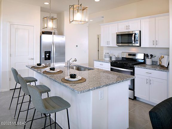 Brand new, energy-efficient home available by Mar 2025! The Quartz floorplan in Tucson, Arizona offers an open concept layout with 3 bedrooms and 2 bathrooms. Umber cabinets with shaded grey granite countertops, wood-look tile flooring with multi-tone carpet in our Elemental package. Residents can enjoy the outdoors at Saguaro National Park, El Rio Preserve, and the Summerstone community park. We also build each home with innovative, energy-efficient features that cut down on utility bills so you can afford to do more living.* Each of our homes is built with innovative, energy-efficient features designed to help you enjoy more savings, better health, real comfort and peace of mind.