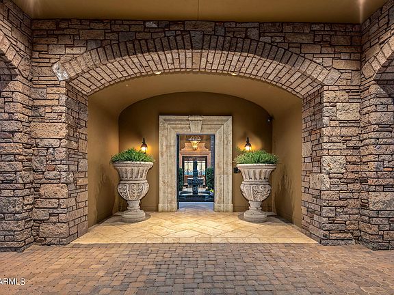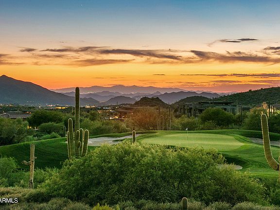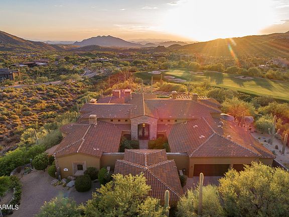 This magnificent Tuscan estate rests upon one of the finest parcels in Desert Mountain. Private and secluded, the lot allows for panoramic mountain, sunset, and city light views. The home is comfortable and inviting, wrapping you in its warmth in every room. There is a striking level of detail and quality to be appreciated in both the refined finishes and architectural style. The generous outdoor living space features a large pool, spa, putting green and swim up bar. Five bedrooms and seven bathrooms are complemented by a full office, fitness room, four car garage, elevator, and a 900 bottle wine cellar. A full golf membership to the Desert Mountain Club is available. Beautifully matched furnishings and some artwork are included with the purchase of the home.