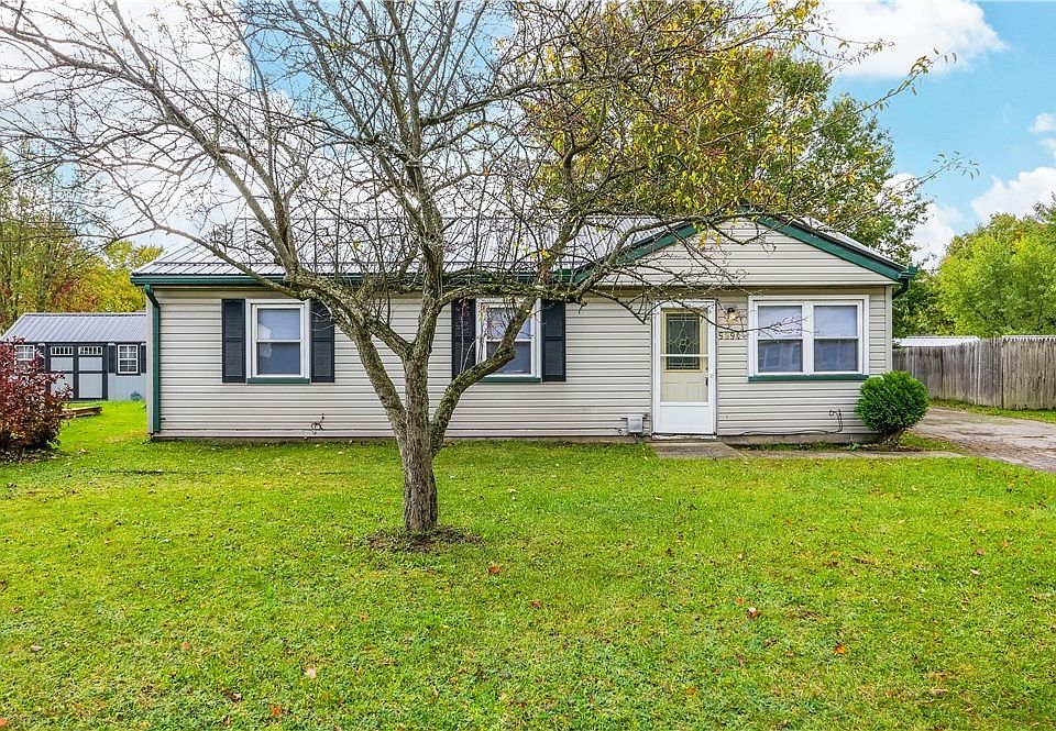 This move-in ready ranch in Windham, Ohio features three bedrooms and stylish updates throughout, including fresh paint and new flooring, making it easy to settle in immediately. The large, updated kitchen and dining area flow seamlessly into the living room, perfect for everyday living and entertaining. A convenient mudroom with laundry hookups opens to the backyard, providing extra storage and functionality. Step outside to a fully fenced backyard featuring a large concrete patio, ideal for entertaining, plus a shed for additional storage. One car detached garage. BRAND NEW METAL ROOF ON HOME. Located in Windham, this home combines modern updates with practical living in a desirable Portage County neighborhood — ready for you to move in and start enjoying!