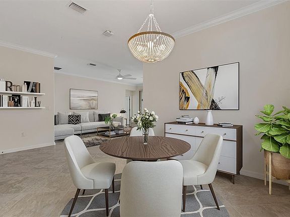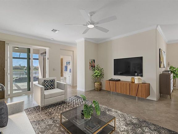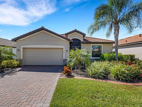 STUNNING 3/2 POOL HOME with Panoramic WATER VIEW and over 130K in UPGRADES, just minutes to downtown VENICE and best GULF BEACHES will simply blow your mind away! Upgrades include, but not limited to: IMPACT HURRICANE WINDOWS throughout home, IMPACT SLIDERS to pool, impact roll down on front entry door, granite countertops, pull-out kitchen drawers, STAINLESS STEEL APPLIANCES, wine refrigerator, crown molding, ALL TILE ON THE DIAGNOAL THROUGHOUT HOME (no carpeting anywhere!), designer lighting and fans, front screen door covering entry, additional STORAGE CABINETS IN LAUDNRY ROOM, comfort height toilets, front and rear entry camera’s for extra security and peace of mind. The DESIGNER CUSTOM POOL WITH WATERFALL overlooks a breathtaking PANARAMIC WATER VIEW, all enclosed by an upgraded clear-view screen cage for maximum enjoyment. This energy efficient smart home is move-in-ready. Light and bright, featuring high ceilings with a lovely open floor plan guarantees easy living home and entertaining. Upgraded to impress, this gem is loaded with functional and fashionable upgrades galore Retreat to the spacious Primary en suite featuring a walk-in closet, dual sinks, a relaxing garden tub, a separate shower, and a private water closet. The two secondary bedrooms are located on the opposite side of the home for privacy and share a large guest bath with a shower-tub combo, which also offers easy access to the pool area. King size bed will fit comfortably in main bedroom and a full size bed or two twins nicely in each guest room. The curb appeal is maximized with attractive curbing around palms and Florida friendly plants in front of home. Resort-style living is truly at your fingertips! The Low HOA fee delivers maintenance-free landscaping, irrigation, private road, property management, and an escrow reserve fund. Enjoy the community's heated zero-entry pool, cabana area, state-of-the-art fitness center, and bocce court, and social activities, all within the secure confines of the gated community. There are no CDD fees and this is also a no flood X zone! The location couldn't be more ideal. You are approximately 3.5 miles from Venice's historic downtown, famous for its boutique shops and dining, and the finest Gulf beaches in Southwest Florida. Enjoy easy access to I-75, exceptional shopping, fabulous entertainment, and the Legacy Trail for nature enthusiasts. Fall in love this fall with this unique luxury home ready to offer a luxurious lifestyle in time to enjoy season. Schedule your showing today to own this very special piece of paradise waiting for YOU!