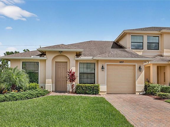 Meticulous 3BR/2BA villa in a sidewalk community. Open concept with ceramic tile throughout, living room, family room, and patio overlooking a spacious back yard. Kitchen flows to dining and gathering spaces. Primary suite offers walk-in shower and double vanity. Air-conditioned garage with laminate flooring and custom shelving. Hurricane shutters, reverse osmosis water system, and hybrid water heater add comfort. Community amenities include pool, tennis, basketball, playground, and more. Close to shopping, dining, and beaches.