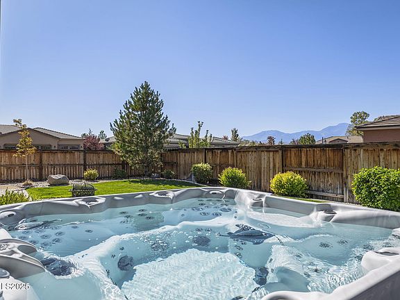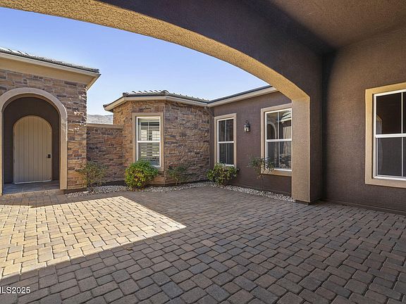 Beautiful home in The Estates at Saddle Ridge with amazing views! This Airmont floor plan is perfect for a large family or someone that wants or needs space. The layout makes entertaining a breeze. Open kitchen/great room with two large islands, gorgeous cabinetry, granite slab countertops and walk-in pantry. Enjoy the picturesque Sierra's and Mt. Rose from the master bedroom or from the backyard of this corner lot. Beautifully designed backyard with oversized paver patios (covered and uncovered), custom outdoor kitchen, hot tub, large water feature and more! Newer carpet and beautiful wood-look tile flooring throughout, custom remote controlled blinds, window shutters, heated and cooled finished garage with extra shelving/storage. Stainless kitchen fridge, washer and dryer included. Smart lighting controls and upgraded lighting. Large storage shed. Enjoy the secluded front courtyard for your morning coffee. Five bedrooms plus flex space for all your needs, Gated community with its own clubhouse, pool, spa, sauna, tennis & pickle ball courts. Located a few minutes from shopping, restaurants, and medical. A short drive to Mt. Rose Ski Resort and Lake Tahoe. Outdoor Kitchen Island included in sale. Security system is owned and stays with home. This home is sure to impress even your pickiest of buyers!
