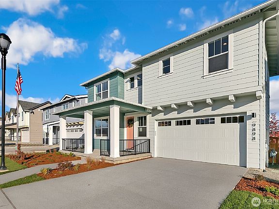 Model Home Sale! Refrigerator, W/D & window coverings included. Our E1 Plan offers a roomy, open kitchen with quartz counters, a tile backsplash, and under-cabinet lighting. Luxury vinyl plank flooring and a cozy electric linear fireplace grace the main level, along with a bedroom and 3/4 bath. Upstairs, the spacious primary suite boasts a 5-piece bath with double sinks, freestanding tub & tile flooring. Three additional well-sized bedrooms and a generous bonus room await you w/ 2nd story balcony access. Step outside to a fully fenced, beautifully landscaped yard, and relax on the covered side porch with a gas BBQ stub. Brokers, kindly register buyers before their first visit.