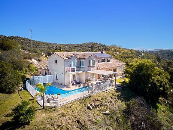 Country Manor City Close! Located minutes from Hwy 8, Blossom Valley, Flinn Springs & Alpine, this spacious home on 6+ acres offers the peace & privacy of living in the country + convenience of being commuter friendly & near shopping & dining. Inside features dramatic great room, floor-to-ceiling stone fireplace, elegant formal dining room, huge kit & 2nd story dedicated to master retreat. Exceptional 960 sf steel building/shop. Entertainer's dream. Swimming pool. Acreage to build a compound. Solar Paid.