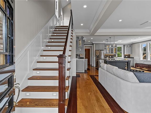 Offering a late 19th century architecturally-authentic home in the Point section of Newport. With 5,000 square feet of land just 1 block from the water, this house has been completely reconstructed both inside and out. Some of the numerous features are: off-street parking for 4 cars, designer granite counters, oversized wide-board colonial oak flooring featuring a graphic star in the adjoining living room, a gas fireplace with a handcrafted mantle, wainscoting that adorns the entirety of the living room walls, state-of-the-art appliances, a kitchen pantry that will make storage and serving guests a dream, a wet bar that features a wine and beverage cooler, individual room HVAC so each room can be set a specific temperature, 4 bedrooms with ensuite bathroom with temperature-controlled heated floors, a third-floor office/bedroom/work out room that has a panoramic view of the Newport Harbor and the Pell Bridge, and lastly, a below-level suite that has a working kitchen, its own bedroom, full bathroom, laundry facilities, and sitting area. This house is conveniently located close to many wonderful attractions. It is a 20-minute walk to Bowen's Wharf, a 10-minute walk to Brick Market, and a 2-minute walk to the waterfront park that overlooks Newport Harbor and the Newport Bridge.