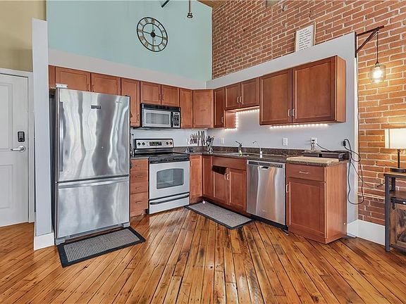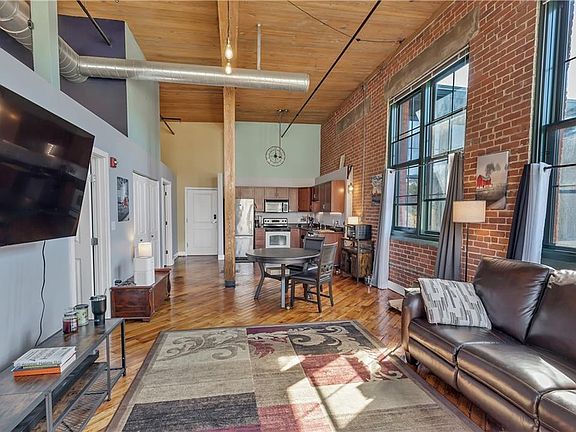 One level second floor corner unit in the beautiful lofts of Allen St! Boasting high ceilings, exposed brick, hardwood floors, in-unit laundry and drenched in natural lighting! The kitchen offers Stainless steel appliances, granite countertops and ample storage space. Open concept living/ dining room to allow room for entertaining guests! Large primary suite with good closet space and a 2nd bedroom that could also be used as a guest room or office! This unit has a deeded storage unit in basement as well as 2 assigned parking spaces. The HOA fee covers water and sewer and all amenities the building has to offer including workout area, recreation area, and outdoor seating with a grill! Short distance from major highways, shopping and recreation! Don't miss out!