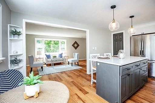 Freshly updated ranch with a laid back bungalow vibe. Curb appeal plus with NEW charming front porch entryway. Gorgeous NEW remodeled kitchen with premium white shaker cabinets & pewter tone center island with upgraded Michelangelo quartz tops. High end SS appliances & pendant lights accentuate the thoughtful design. Living room is bright & airy with oversized picture window allowing plenty of natural sunlight. Stunning full bath with NEW fixtures including custom shaded blue vanity with cultured marble countertop, undermount ceramic sink & aged brass hardware. NEW Houzz worthy porcelain tile floor & open shelving add a designer feel. 2 spacious bedrooms & generous closets complete the main level. NEW finished lower level doubles your living area with 3 rooms adding more bonus space to this versatile floorplan. NEW baseboards with multiple thermostats for efficiency, NEW paint, interior doors, fixtures, hardware, landscaping & driveway sealcoat. OPEN HOUSE Fri 3pm-5pm, Sat 11am-1pm