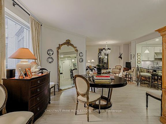 A beautifully upgraded and thoughtfully redesigned residence in one of Yorkville's most sought after boutique buildings. This refined suite boasts 925 square feet of meticulous and cohesive living space with high quality improvements throughout, including custom California Closets in three storage areas, upgraded lighting with pot lights, crown molding in recessed ceilings, re stained hardwood floors, new hardware, and elevated millwork that adds a timeless and sophisticated feel. The kitchen has been refreshed with upgraded new appliances including a gas stove, refinished cabinetry, improved lighting, and stylish finishes that enhance both function and design. The bedroom features a newly designed built in closet perfect for additional storage. The full bathroom renovation introduces a spa inspired level of quality with high end fixtures, custom storage, elegant materials and marble throughout. This suite includes one parking space and one locker. Situated in the heart of Yorkville, this residence offers unparalleled access to luxury shopping, Michelin rated dining, top fitness studios, the Four Seasons, the ROM, and the city's finest amenities. A rare opportunity to own a move in ready suite in a prestigious building steps from everything Yorkville has to offer.