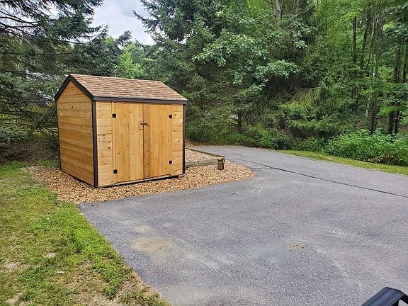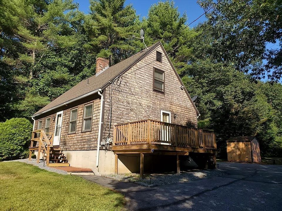 Spacious open yard set back from the road. This property borders 100 acres of wooded land in forestry. Nice and private. Ready to move right in! The long driveway offers lots of parking, there is an outdoor shed for storage, and a raised garden near the house. The side deck is perfect for entertaining and grilling. The front deck enters into the living room and open concept kitchen & dining room. There are 2 bedrooms upstairs with a half bath, and two bedrooms on the main level with a full bath. The home has been very nicely updated over the years. Close by to Lake Dennison Recreation Area, with walking trails, bike trails, fishing, camping & a public beach. People travel from all over to visit that park. Just a few minutes from town center with convenient shopping, post office, savings bank, YMCA Gym with indoor pool, tennis courts, walking & bike paths, bowling alley, laundromat, restaurants and shops. Less than 10 miles from shopping in New Hampshire(Tractor Supply, Walmart, etc).