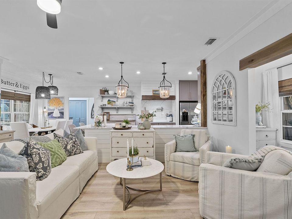Welcome to the magical retreat at 99 Bay Trace, a spellbinding Craftsman-style residence in the heart of historic Point Washington. Nestled within the enchanting National Park area, surrounded by state forests and walking trails.This 3-bedroom, 2-bathroom home exudes storybook charm and modern allure, making it a truly unique haven in THE WOODS subdivision.As you step through the front door, the open concept kitchen welcomes you with Calcutta Quartz countertops, large butler's pantry, and high-end appliances including Cafe Double ovens and induction stove top. Remodeled in 2022, the bathrooms feature exquisite porcelain tile floors, while the living areas boast brand-new Luxury Vinyl Plank (LVP) flooring, creating an atmosphere of timeless elegance. Continue for MORE amazing details>.