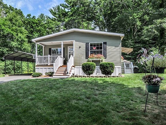 If you're looking for a new home in a senior community THIS IS IT! Privacy abounds in this IMMACULATE 1400+ sf manufactured home situated on a retreat lot backing up to conservation land on a quiet cul-de-sac in the Park. Halifax Estates is a resident owned community in a quiet, rural setting conveniently located to downtown Plymouth & many amenities! Built in 2012 this home features open concept living at its best. Living room, dining room & kitchen are wide open & centered by a large island perfect for gathering family & friends. The large kitchen features stunning cabinetry and stainless appliances, No need to get rid of the hutch you love, this dining room is big enough to handle 2. Large master bedroom offers great closet space & its own full bath. The second full bath is conveniently located between the 2nd bedroom and the den. 1 year old car port, Separate laundry area at the side entry, tons of closet space & a shed complete the picture. OPEN HOUSE Sun 8/16 11-1.