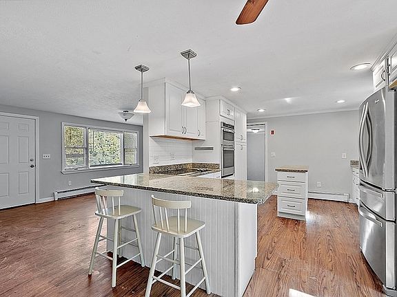 - Features: Dining Area, Countertops - Stone/Granite/Solid, Kitchen Island, Cabinets - Upgraded, Remodeled, Peninsula