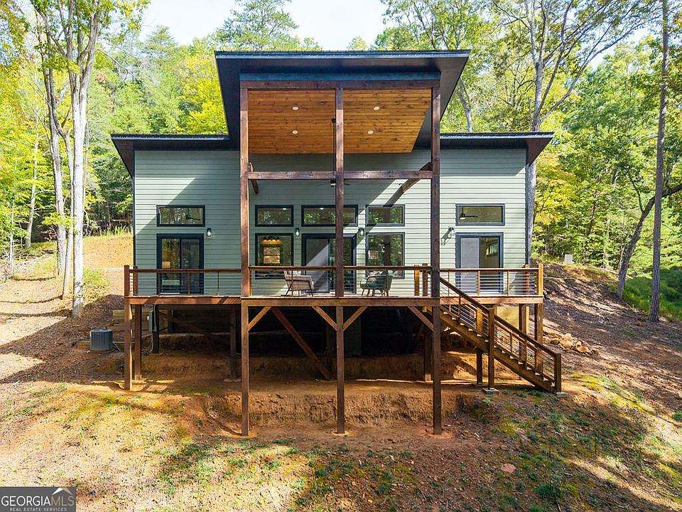 Nestled in the highly sought-after My Mountain subdivision, this brand-new construction offers the perfect blend of modern design and mountain serenity. Never lived in or rented, this 2-bedroom, 2-bath Mountain Modern retreat is set on 1.33 parklike acres with a beautiful, usable wooded lot that creates a true modern treehouse setting. Step inside to an open-concept living space with soaring ceilings, exposed beams, and abundant natural light streaming through Andersen windows and sliding doors. Every detail was built with love, luxury, and quality in mind-from James Hardie siding and trim to quartz countertops in the kitchen and baths, plus energy-efficient foam insulation. Each bedroom offers its own private ensuite, making this home ideal for full-time living for a small family, a mountain getaway, or an investment opportunity as a short-term rental. Outdoors, the expansive back porch is designed for quiet relaxation while being completely surrounded by the peaceful forest. Tucked away for privacy and tranquility, yet conveniently located to the best of Blue Ridge and Morganton, this home is truly a rare find. Priced to sell-you have to see it in person to feel the magic.
