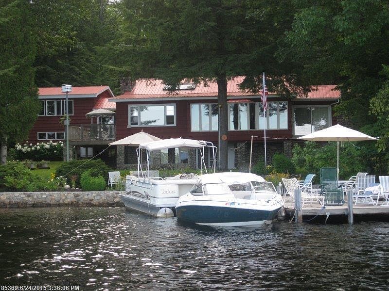 Sit in the 3 season porch and enjoy the views down the lake from this large, private, level lot with sandy beach. Fieldstone hearth in great room, master bedroom suite with private patio, large deck, 1 car attached garage. Generator. So much for so little.