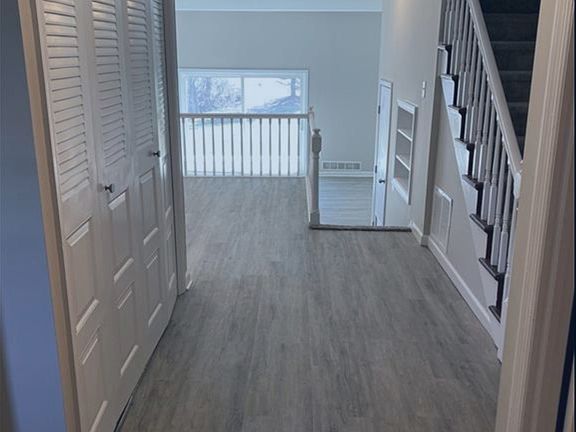 This pristinely updated end unit is turnkey. 3BR/2.5BA townhouse unit has newer vinyl plank flooring on the main level and newer wall to wall carpeting on the 2nd floor. This unit also includes newer lighting, refinished kitchen cabinets with granite countertops, tile backsplash and updated appliances. Kitchen area has a washer/dryer and opens into a large dining room area overlooking the spacious, sunlit living room. Large sliders off the living room open to private patio with a separate outdoor storage area overlooking a quiet stream. Upper level includes the Primary bedroom that has a full bath w/ walk-in shower, a large updated hallway bathroom and 2 additional spacious bedrooms. Updated mechanicals, covered carport, pool, clubhouse & tennis courts. Close to highways, shopping, restaurants. 1 yr. lease. Minimum credit score 700 is required. One cat or dog is allowed. There is a separate, additional deposit for pets. Please inquire with listing agent for information and restrictions. Minimum credit score of 700.