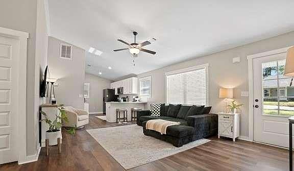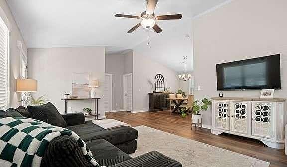 Welcome to your new home! Built in 2022, this delightful 3 bed, 2 bath residence offers a blend of comfort and style. This home features an open concept layout with LVP flooring throughout the living room, dining room, and kitchen. The spacious living area seamlessly flows into a gourmet kitchen equipped with white custom cabinetry, stainless-steel appliances, and beautiful granite countertops. Retreat to the private master suite featuring an ensuite walk-in closet and bathroom designed with a double sink vanity and luxurious soaking tub. You can also find two additional spacious bedrooms perfect for your home office or entertaining guests. Enjoy peace of mind and seclusion in your landscaped backyard, enclosed by a wood privacy fence. Located in a quiet neighborhood with convenient access to schools, shops, and parks. Don't miss this amazing opportunity and schedule a tour today!