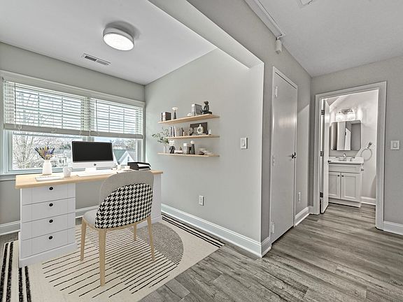 Step into this completely remodeled, sun-filled 850 sq ft apartment featuring an open-concept design and modern finishes throughout. The beautifully appointed kitchen boasts quartz countertops, stainless steel appliances, custom cabinetry, and elegant tile backsplash - perfect for entertaining. The generous living and dining area flows seamlessly together, while a convenient half bath on the main level accommodates guests. Upstairs, you'll find a spacious bedroom with walk-in closet and private ensuite bathroom, plus a charming nook ideal for a home office or reading retreat. Additional features include under-stair storage and a dedicated mechanical room for extra storage space. This well-maintained building offers ample parking and is located above professional offices for a quiet living environment. Lease requirements include first month's rent plus two months security deposit, proof of income, and renter's insurance at signing. There is a $40 Rentspree application that includes credit and background check, with a minimum credit score of 650 required. Tenant is responsible for all utilities. No pets and no smoking permitted in the building. 2025-10-02