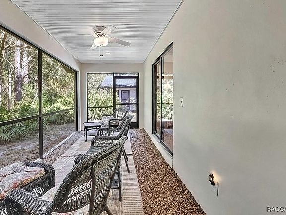 Surrounded with a deep greenbelt, the lanai has flooring and ceiling upgrades. A screened in oasis that feels like living in a Florida Friendly Space. Updated 2021 Water Heater, lighting, new paint inside and out. Owner had the exterior updated with maintenance free Hardie Board Siding in 2023 to last forever. New Roof in 2023. New HVAC in 2021. New luxury Vinyl Planking just installed really updated this home throughout. This floor plan includes a "Barn Door Slide" which creates two separate Master Suites. Great for guests or room mates. Updated Kitchen and bathrooms with a breakfast bar and dining room/living room leading out on to the lanai. Also features a side patio off the dining room for a grill or another dining/seating area. Lots of room for living here. This owner thought of everything to make this home ready for you. When you walk in to this home you will appreciate the owner's attention to detail. Quick access to Highway 19 and 589, including the Suncoast Parkway Bike Trail, as well as river/gulf water life with Weeki Wachee River (20 Mins), Chassahowitzka (5 mins), Homosassa (10 mins) and Crystal River (15 mins) all near by.