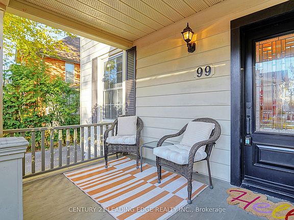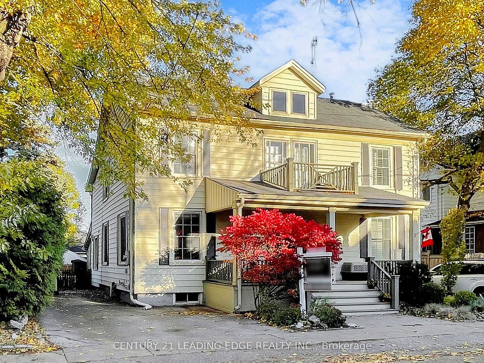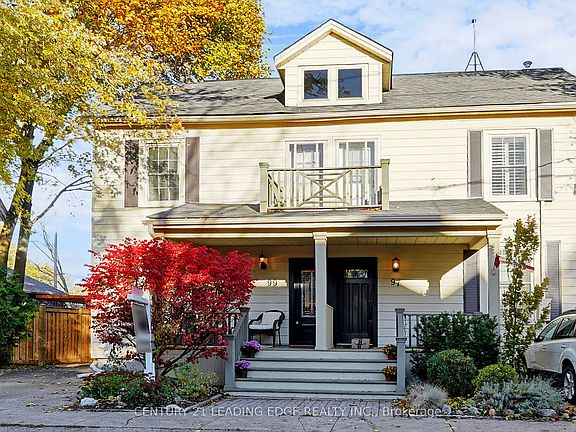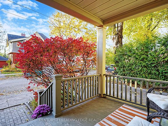Charming Century Home on One of Stouffville's Most Sought-After Streets,Welcome to this beautiful circa 1870 semi-detached home, nestled on a tree-lined street in the heart of Stouffville. Bursting with character and charm, this 3-bedroom gem sits on a deep 150-foot mature lot, just steps to Main Street Stouffville's shops, restaurants, and amenities.The inviting combined living and dining area features laminate floors and a cozy electric fireplace, perfect for relaxing or entertaining. The eat-in kitchen opens to a main floor office-ideal for working from home-and a convenient brand new 2-piece washroom.Upstairs, you'll find three generously sized bedrooms, including a primary suite with a walk-out to a balcony, 4-piece family bathroom also on second floor. Charming details such as a window bench seat and custom built-in bookcases add warmth and personality throughout.Enjoy mornings on the large front porch or evenings in the spacious backyard surrounded by mature trees-this property offers the perfect blend of historic character and modern comfort in a truly exceptional location.
