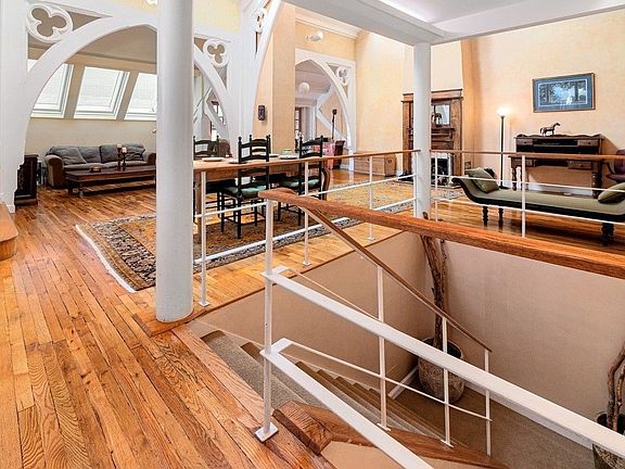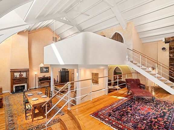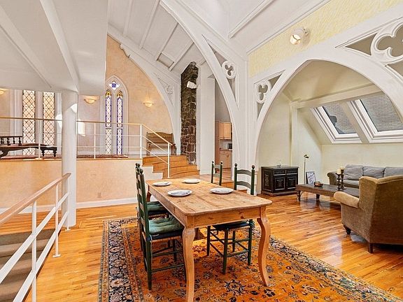 This dramatic, totally unique loft located in a converted gothic revival church (circa 1850) offers enormous space (approx. 2500 sq ft) punctuated with 23-foot-high cathedral ceilings. Currently configured on multiple levels and capped by a sprawling sleeping loft, this showplace residence features an abundance of light delivered through four massive stain glass windows & several large skylights. The current layout also includes two dens, two great rooms, a sitting room, two baths, a chef's kitchen and laundry room. Other features include a generous sized terrace, central air, a working fireplace, storage and a private entrance! Priced to sell, this one-of-a-kind home is waiting to be defined as your masterpiece! Located in the heart of Brooklyn Heights close to subways, schools, shopping, dining, the Promenade and Brooklyn Bridge Park- 99 Clinton offers convenient access to everything The Heights has to offer while also being just minutes away from Downtown Brooklyn.