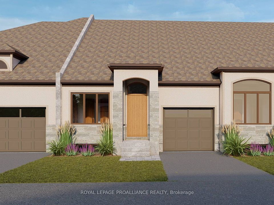 Welcome to Northgate Condominiums, a cozy community of townhome condominium units conveniently located just North of the 401 in Belleville, minutes from the Quinte Mall. This beautiful brand new bungalow townhome is currently under construction and will be move in ready December 2025. Featuring two bedrooms, two bathrooms and an attached one car garage with inside entry. The main floor is completed with 9ft ceilings and includes a well appointed kitchen with quartz countertops and corner pantry. The great room, located just off the kitchen, looks out to the 12' x 12' pressure treated wood deck. The bright primary bedroom includes a walk in closet as well as a 3-piece en-suite bathroom. The main floor is completed with an additional bedroom, main bathroom and a convenient laundry room. This home also includes a full unspoiled basement with basement bathroom rough in. ***OPEN HOUSE LOCATED AT MODEL HOME AT 2-99 CLOVERLEAF DRIVE***