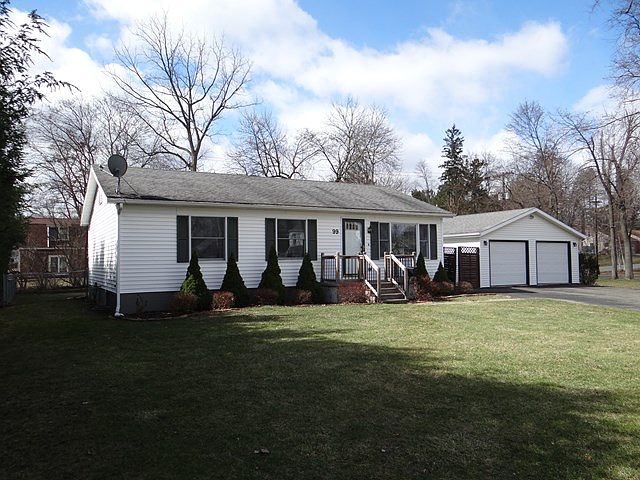 Move-in condition, 3-to 4-bedroom ranch home with 2 full bathrooms. Cherry cabinets in the kitchen with an eat-in area. 2 nice-size bedrooms, one a little smaller. Large lot! Listing includes the additional lot (tax map #99.09-1-48). Fenced-in back yard around the house. Open deck for entertaining behind the large 2-car garage. Finished lower level family room along with a 4th bedroom/hobby room/office - the choice is yours. Full bath off this room as well. Beautiful corner lot. $500 credit to buyer at closing for carpet in master bedroom. NEW ROOF - 2017!!