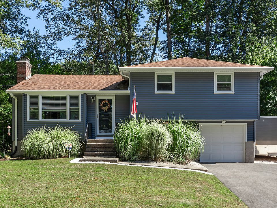 Welcome to this beautifully updated split-level, nestled in one of Meriden's most sought-after neighborhoods. The home has been meticulously maintained and thoughtfully improved with major investments inside and out, offering modern comfort while preserving its timeless character. Recent upgrades include a new Weil-McLain boiler (2025), a 3-ton Heil central air system (2024), Gentek insulated vinyl siding, Harvey Low-E windows, Andersen bay window and patio slider, plus a stunning oversized Trex deck. The interior shines with hardwood floors, crown molding, a remodeled kitchen with stainless steel appliances, granite countertops, island, and tiled backsplash. Additional features include an updated bathroom, LED motion lighting, and a widened driveway. With these extensive updates, this home is truly move-in ready, offering energy efficiency, style, and peace of mind. Get ready to pack your bags and make this one home! Home is currently listed as two bedrooms on the tax card. A third bedroom wall was restored, records are in the process of being updated to reflect.