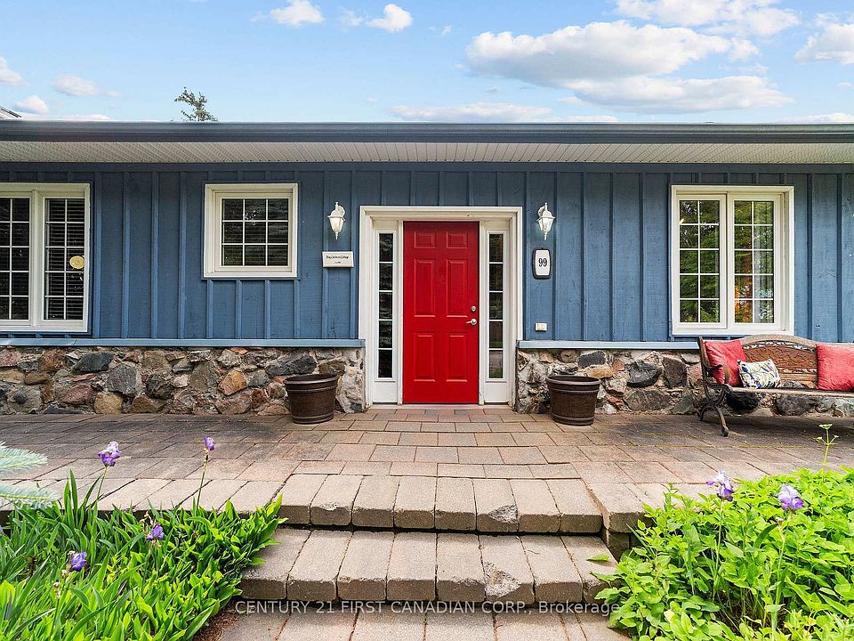 Welcome to 99 Duchess Ave. Step into timeless charm with this beautifully preserved circa-1885 Ontario cottage in the heart of Lucan. Rich in character and history, this 3-bedroom, 2-bath home offers a rare blend of original warmth and thoughtful modern updates. Soaring 9-foot ceilings, wide baseboards, and a welcoming layout create an airy yet cozy feel. The front of the home features two spacious bedrooms and a full 4-piece bath, while the private primary suite is tucked away at the back with its own ensuite. The family room, centered around a gas fireplace, flows seamlessly into the kitchen and dining area perfect for everyday living and entertaining. Outside, the curb appeal is undeniable with a full-width front porch, elegant stone and wood siding, and a stone driveway. The fully fenced backyard is a serene retreat with a deck and beautifully landscaped gardens front and back. All the charm of yesteryear, nestled in a peaceful, walkable community just minutes from London.