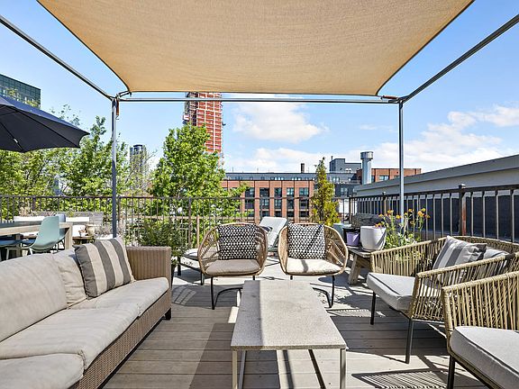 TURN-KEY HOME WITH PRIVATE ROOF DECK, STORAGE, & LOW MONTHLIES! Welcome home to this spacious, light-filled, turn-key residence in the heart of Greenpoint. Just 2 flights up is this gorgeous floor-thru condo, lovingly maintained by one owner, in like-new, immaculate condition. Currently configured as a 2 bedroom + den + separate dining room, this spacious layout gives you flexibility thanks to its oversized northern and southern facing windows and a centrally located expansive skylight. This unique home offers the best of both worlds - the 3 unit townhouse conversion gives you the feel of a private home, while still offering the amenities and convenience of condo living. Enormous 11 foot ceilings and an exposed brick decorative fireplace offer charm and sophistication that you can't find in a cookie-cutter highrise. The modern chef's kitchen, open floor plan, washer-dryer in unit, A/C, tons of closet space, and renovated bathrooms offer the ease of a move-in ready apartment. You also get a ~20 square foot private storage locker included in the price. Unit 3 is a wonderful combination of exceptional light, high ceilings, designer finishes, and expansive private outdoor space in a boutique building package. The crown jewel of this home is the attached sun-flooded private roof deck. This 700+ square foot massive, unobstructed space is a true outdoor oasis, with an outdoor living room, dining room, grill, and lounging area. An entertainer's paradise with views from the Empire State Building to LIC, this magical space will transform your city living. 99 Dupont is a boutique 3 unit condo conversion that boasts extremely low monthlies. Located in the vibrantly growing northern section of Greenpoint, this waterfront neighborhood has award-winning artisanal dining, dog parks, running paths, art galleries, cocktail bars, and so much more. Shop and dine along Manhattan and Franklin avenues, take in the picturesque views from waterfront Transmitter Park, and be in Manhattan in minutes via either the ferry or the G train. This is a truly special and unique home and it's not to be missed. OPEN HOUSE BY APPOINTMENT ONLY