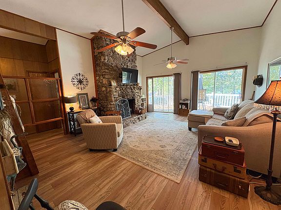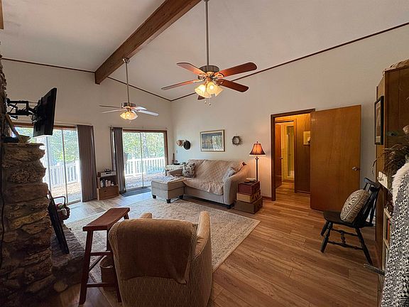 Tucked among the trees overlooking Lake Cherokee, this 3-bedroom, 2-bath holiday-style cottage feels like stepping back into a simpler time — the kind of place where mornings start with coffee on the deck and end with the glow of the stone fireplace or sitting amongst the trees by the fire pit. Vaulted ceilings and rich wood tones give the home a cozy, old-school character that you just don’t find anymore. The open-concept living, dining, and kitchen area makes gathering effortless, while sliding glass doors in both the primary suite and guest bedroom invite in soft lake views and natural light. The primary suite is privately tucked on one side with its own bath and laundry, offering separation from the additional bedrooms. Outside, a fenced yard and extra lot give space to breathe — perfect for pets, gardening, or just relaxing under the trees. Whether it’s a full-time retreat or a nostalgic weekend getaway, this cottage blends vintage charm with lakeside living in the heart of Cherokee Village.
