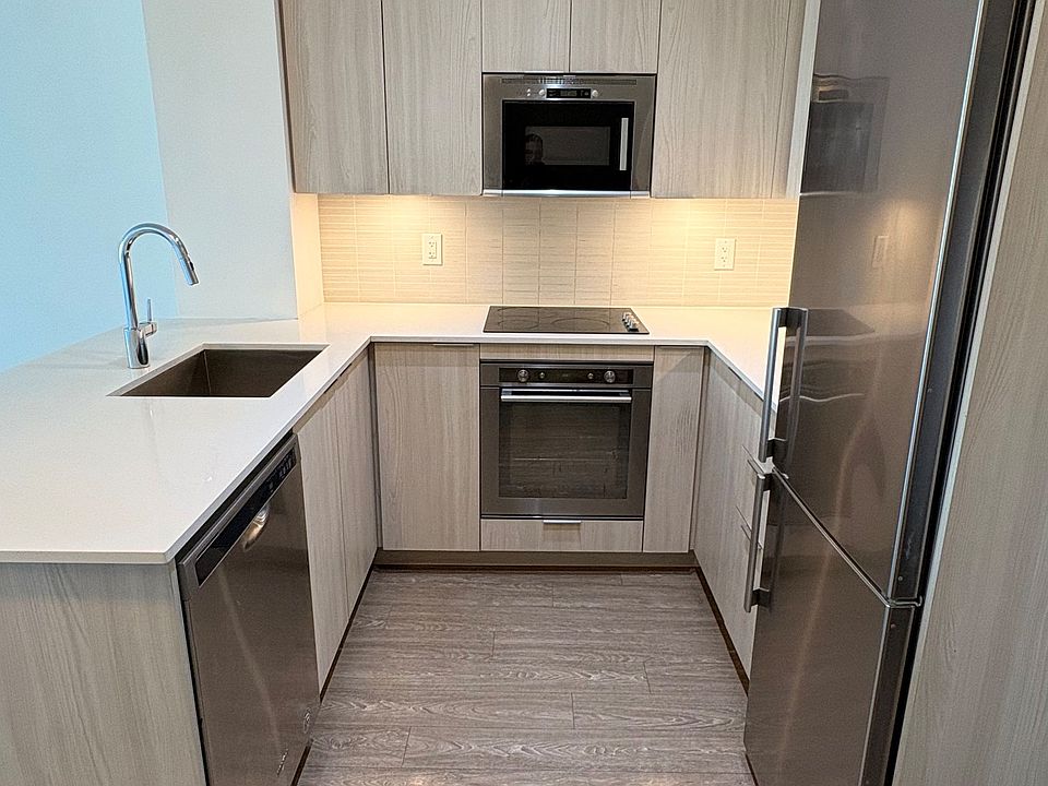 Stylish and well-appointed 1-bedroom, 1-bathroom suite in the sought-after Indigo Condominiums. This bright unit features soaring ceilings, expansive floor-to-ceiling windows, an open-concept living space, and a spacious balcony with stunning north/cast views overlooking Eagles Nest Golf Course. Enjoy outdoor dining and relaxation on the 9th-floor barbecue terrace while taking in sweeping city vistas. The unit offers a functional layout with an ideal footprint. Residents enjoy an impressive list of amenities, including a 24-hour concierge, state-of-the-art fitness and yoga studios, a rooftop terrace with BBQ areas, a theatre, sauna, spa, party lounge, and guest suites. Perfectly positioned just steps from Maple GO Station and minutes to Highways400/407, Vaughan Mills, and Canada's Wonderland, this condo is ideal for professionals seeking a blend of luxury, comfort, and everyday convenience. One parking spot included!