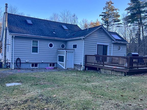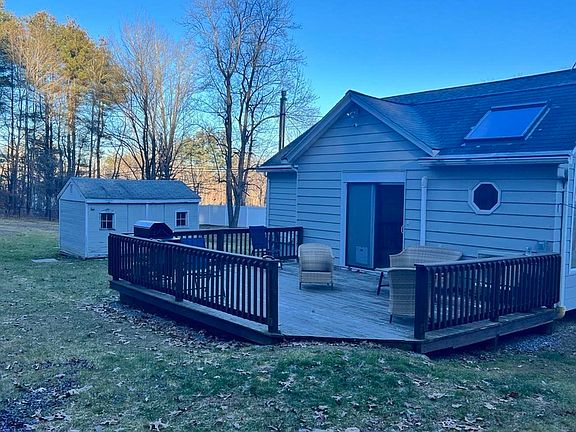 Situated on 3 acres of land, this charming 1950's Cape is not to be missed! With over 1,400 square feet of living space, there's plenty of room for relaxation and entertaining. Enter through the side door to the spacious tiled sunroom with skylights and a cathedral ceiling. From there, you can access the wooden deck through sliding doors or step into the kitchen, which features plenty of countertop space, wood cabinets, and peninsula seating. The sunny first-floor bedrooms are adorned with lovely hardwood flooring, and there are two full bathrooms for added convenience. The sun-filled living room offers plenty of space for gatherings. Upstairs, you'll find the third bedroom and an office with built-in storage. The full basement provides extra storage space, and outside, you'll find a level, a full fenced-in backyard, three outdoor storage sheds, and a two-car detached garage.