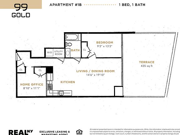 *Welcome to 99 Gold, a premier, amenity rich building located where DUMBO meets Vinegar Hill!* Virtual tours and in-person tours are now available! Due to COVID-19, Open Houses are by appointment only--no exceptions. New to the market is this *1 Bedroom* with an additional home office space located on the first floor with a 400sqft+ private backyard and expansive western views! No broker fee! *The Apartment:* Each loft-style apartment at 99 Gold Street is thoughtfully designed with a spacious layout and condo quality finishes. With floor to ceiling windows and 12 foot ceilings, light pours into the bedroom, living space, and open kitchen, creating a warm and open environment. The kitchens come equipped with marble countertops and a Bosch stainless steel appliance package, including dishwasher and microwave, as well as a four top range. The bedroom can comfortably accommodate a king-sized bed with additional furniture. With multiple closets, private outdoor space, central heating and air conditioning, and the option of in-unit laundry at no additional cost, we've gone above and beyond to check every box. *The Building:* Previously a toy factory, 99 Gold is a standout in the area, featuring original details throughout. 99 Gold is home to 87 unique layouts, as well as a plethora of amenities, including a 24-hour door attended lobby, state of the art fitness center with a Peloton bike, Basketball court, Laundry room, Bike parking and a furnished rooftop lounge with sweeping bridge and Manhattan views. Parking and storage also available at an additional cost. *The Neighborhood:* Located on a scenic tree lined, cobblestone street, 99 Gold is conveniently located where DUMBO meets Vinegar Hill. The neighborhood is famous for its iconic views. From the Brooklyn Bridge views at Main Street Park, to the Manhattan Bridge view on Washington Street, you're constantly reminded of Brooklyn's ever-growing history. Spend your weekend afternoons at the Brooklyn Flea, grab lunch at Time Out Market for some of the borough's best offerings, get a workout in at Brooklyn Bridge Park, and dine in at some of Brooklyn's most renowned restaurants, including Vinegar Hill House, Cecconi's, Cafe Gitane, The River Cafe and Westville. Just three blocks from the F train at York Street and a short walk to A and C trains at High Street. CitiBike station located outside your front door! Contact us today for a showing!