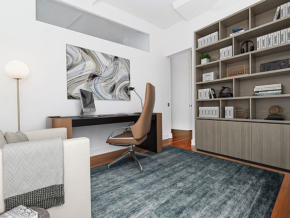 *Welcome to 99 Gold, a premier, amenity rich luxury building located where DUMBO meets Vinegar Hill!* First three photos shave been virtually staged. Virtual tours and in-person tours are now available! Due to COVID-19, Open Houses are by appointment onlyno exceptions. New to the market is this alcove studio with an additional home office located on the second floor with a private balcony and expansive western views! No broker fee! *The Apartment:* Each loft-style apartment at 99 Gold Street is thoughtfully designed with a spacious layout and condo quality finishes. With floor to ceiling windows and 12 foot ceilings, light pours into the living space and open kitchen, creating a warm and open environment. The kitchens come equipped with marble countertops and a Bosch stainless steel appliance package, including dishwasher and microwave, as well as a four top range. At an impressive 1,071sqft, this legal studio offers more than enough space to have separate living and bedroom areas while still comfortably accommodating a dining set. With multiple closets, private outdoor space, central heating and air conditioning, and the option of in-unit laundry at no additional cost, we've gone above and beyond to check every box. *The Building:* Previously a toy factory, 99 Gold is a standout in the area, featuring original details throughout. 99 Gold is home to 87 unique layouts, as well as a plethora of amenities, including a 24-hour door attended lobby, state of the art fitness center with a Peloton bike, Basketball court, Laundry room, Bike parking and a furnished rooftop lounge with sweeping bridge and Manhattan views. Parking and storage also available at an additional cost. *The Neighborhood:* Located on a scenic tree lined, cobblestone street, 99 Gold is conveniently located where DUMBO meets Vinegar Hill. The neighborhood is famous for its iconic views. From the Brooklyn Bridge views at Main Street Park, to the Manhattan Bridge view on Washington Street, you're constantly reminded of Brooklyn's ever-growing history. Spend your weekend afternoons at the Brooklyn Flea, grab lunch at Time Out Market for some of the borough's best offerings, get a workout in at Brooklyn Bridge Park, and dine in at some of Brooklyn's most renowned restaurants, including Vinegar Hill House, Cecconi's, Cafe Gitane, The River Cafe and Westville. Just three blocks from the F train at York Street and a short walk to A and C trains at High Street. CitiBike station located outside your front door! Contact us today for a showing!