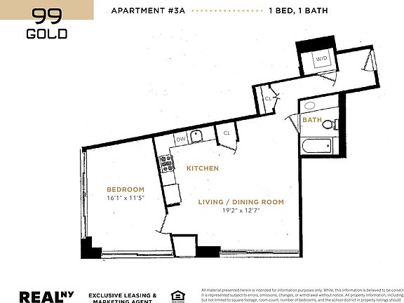 Welcome to 99 Gold Street, a premier, amenity-rich luxury building located where DUMBO meets Vinegar Hill! With its industrial chic details and luxury condo finishes, this apartment gives you the best of two New York City worlds. This spacious 1-bedroom corner unit features: -King-sized bedroom with floor-to-ceiling sliding windows -Spacious living room with balcony access -Open kitchen with marble countertops & Bosch stainless steel appliances -Beautiful contemporary bathroom -12' high ceilings with oversized windows -Beautifully polished hardwood floors -Washer & dryer in-unit and central heat & cooling What used to be a toy factory in 1919, is now a timeless converted industrial loft building. It retains its original details throughout, while also providing you with every modern convenience you could need. Come home to a plethora of amenities, such as: -A rooftop terrace with sweeping views of Manhattan -State of the art fitness center with Peloton -24-hour door-attended lobby -Laundry room -Basketball court and children's play area -Bike storage -Parking and storage (additional cost) Located on a scenic tree-lined cobblestone street, 99 Gold is in one of New York's most vibrant neighborhoods. Just minutes away from your doorstep, you'll find: -Brooklyn Bridge -Brooklyn Bridge Park -Main Street Park -Famous view of the Manhattan Bridge -Brooklyn Flea -Time Out Market -Some of New York's most renowned restaurants, like The River Cafe Also convenient for transportation -Three blocks from the F train at York Street -Short walk to the A and C trains at High Street -CitiBike Station right outside the building Let us welcome you to your new home!