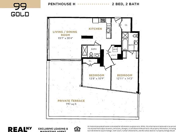 *Manhattan Views | 797 SF Private Terrace | Premiere Penthouse* Welcome to 99 Gold Street, a premier, amenity-rich luxury building located where DUMBO meets Vinegar Hill! With its industrial chic details and luxury condo finishes, this apartment gives you the best of two New York City worlds. This rarely available penthouse unit features: -King-sized primary bedroom with World Trade Center views -Queen-sized secondary bedroom that sits on the corner -800 SF PRIVATE terrace with expansive views of Manhattan -Midtown views from a spacious living room -Floor-to-ceiling windows with western exposure -Large kitchen with stainless steel appliances and plenty of cabinets -Gorgeous hardwood flooring and high ceilings throughout -Washer/dryer in-unit -No broker fee! What used to be a toy factory in 1919, is now a timeless converted industrial loft building. It retains its original details throughout, while also providing you with every modern convenience you could need. Come home to a plethora of amenities, such as: -A rooftop terrace with sweeping views of Manhattan -State of the art fitness center with Peloton -24-hour door-attended lobby -Laundry room -Basketball court and children's play area -Bike storage -Parking and storage (additional cost) Located on a scenic tree-lined cobblestone street, 99 Gold Street is in one of New York's most vibrant neighborhoods. Just minutes away from your doorstep, you'll find: -Brooklyn Bridge -Brooklyn Bridge Park -Main Street Park -Famous view of the Manhattan Bridge -Brooklyn Flea -Time Out Market -Some of New York's most renowned restaurants, like The River Cafe Also convenient for transportation -Three blocks from the F train at York Street -Short walk to the A and C trains at High Street -CitiBike Station right outside the building Contact us for a showing and let us welcome you to your new home!