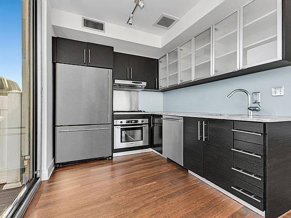 Penthouse living with rarely available 1000 SF Private Terrace! 99 Gold Street is a premier, amenity-rich luxury building located where DUMBO meets Vinegar Hill. What used to be a toy factory in 1919, is now a timeless converted industrial loft building. It retains its original details throughout, while also providing you with every modern convenience you could need. Penthouse Features: King -sized bedroom with a walk-in closet and skylight 1000 sf Private Terrace Floor-to-ceiling windows Large kitchen with stainless steel appliances and plenty of cabinets Gorgeous hardwood flooring and high ceilings throughout Washer/dryer in-unit Central Air Building Amenities: A rooftop terrace with sweeping views of Manhattan State of the art fitness center with Peloton 24-hour door-attended lobby Laundry room Basketball court and children's play area Bike storage Elevator Parking and storage (additional cost) Location: 99 Gold Street is ideally located where the historic charm of Vinegar Hill meets the dynamic energy of DUMBO, one of Brooklyn's most sought-after neighborhoods. Located near the East River waterfront, residents enjoy easy access to scenic parks, trendy cafes, world-class dining, and boutique shopping. Local attractions include Brooklyn Bridge Park, Empire Stores, Jane's Carousel, and iconic views of Manhattan and Brooklyn Bridges. Transportation: 99 Gold is located three blocks from the F train at York Street and near the A C trains on High Street or take advantage of a CitiBike station located right outside of the building. First Month's Rent and Security Deposit equal to One Month's Rent are due at signing in addition to a $20 application fee for each applicant.