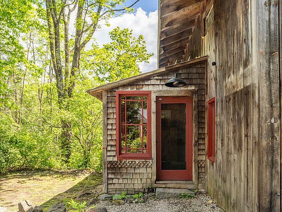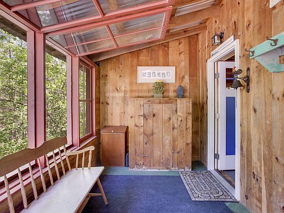 a center stone fireplace and abundant wood accents that create a warm, inviting atmosphere. Complementing the main house is a separate 693 sq ft building, perfect for use as a studio or guest space. The property has a whimsical, fairy-tale quality, enhanced by a greenhouse, lush gardens, and charming outbuildings, making it a magical oasis for creative living and nature enthusiasts.