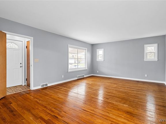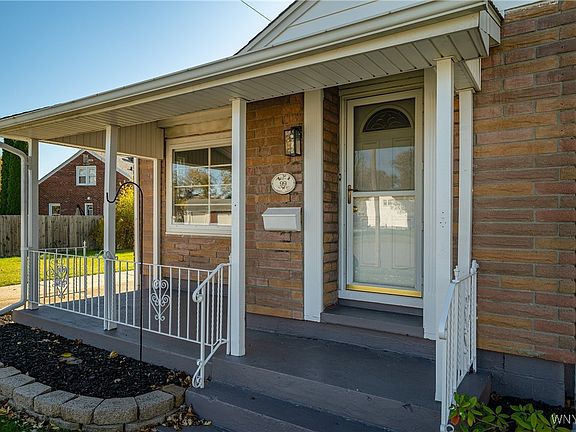 Welcome to this charming brick & vinyl cape in Cheektowaga! Located on a quiet, double lot, tree-lined street, this home features updated lighting, original hardwood floors, new vinyl flooring, and new interior paint. Walk up the large covered front porch, entry way with storage and into light/bright spacious living room, where original hardwood flooring takes you to the formal dining room and into the eat-in kitchen. Full bath, recently updated with toilet & vanity, and two bedrooms complete the first floor. Upstairs, features third bedroom, with a bonus room perfect as a playroom, home office, or studio! The large full basement is clean and dry, with recently replaced mechanics, glass block windows and bonus full bathroom. Perfect for finishing. Outside, the home is situated on a double lot with low maintenance landscaping, concrete driveway opening up to double wide drive near garage for convenience, and partially fenced yard. Move right in to this low maintenance home. Offers reviewed as they are received.