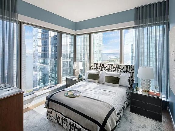 Experience world-class luxury at the iconic 99 Hudson in this stunning, meticulously maintained 2-bedroom, 2-bathroom home on the prestigious 12-line, available in early November. With soaring 10-foot ceilings and triple exposure to the east, south, and west, the residence is flooded with natural light all day long. Multiple floor-to-ceiling windows offer magnificent, bird's-eye views of the New York City skyline, the Hudson River, One World Trade Center, New York Harbor, and Liberty State Park. Both bedrooms are exceptional corner rooms with double exposure and equally amazing views. The master suite features a sleek walk-in shower, while the second bathroom offers a deep bathtub. The home is appointed with custom window treatments in all rooms, including blackout shades in both bedrooms, 5-inch wide oak flooring throughout, and an energy-efficient heating and cooling system with individual climate controls. The modern kitchen is equipped with top-of-the-line appliances and a garbage disposal unit for your convenience.